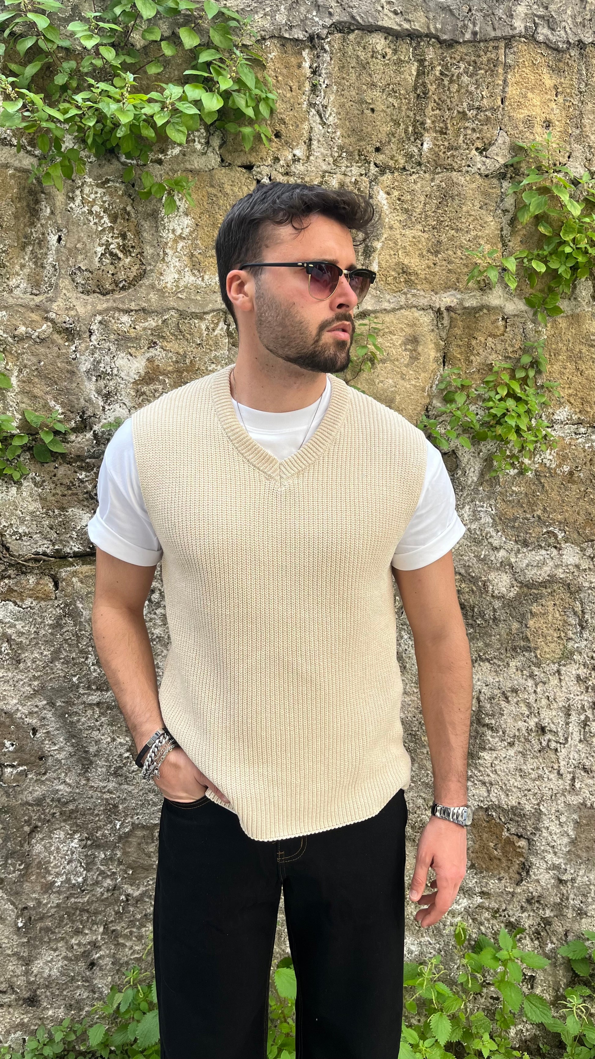 Smanicato in cotone e filo vestibilità slim